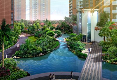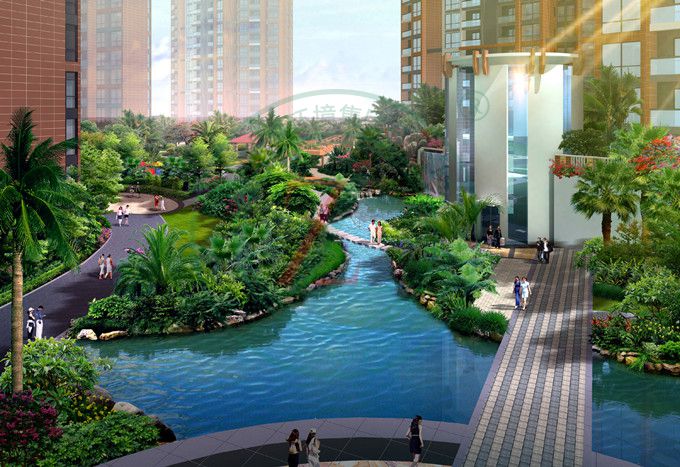 蓮塘地塊羅湖區保障性住房項目園林景觀設計立足于強化總體規劃及建筑設計特色,引入自然綠色概念,根據澳洲昆士蘭省北部的熱帶度假區為模式的景觀設計理念,燦爛的陽光配合熱帶雨林般的植物群落,復制極具自然的、茂盛的熱帶植物群落,利用充沛雨量的回收系統所帶來的充足水源營造自然溪流、水景,根據高差變化設置特色休閑臺地空間,營造一個立體化的充滿自然氣息的住戶花園。